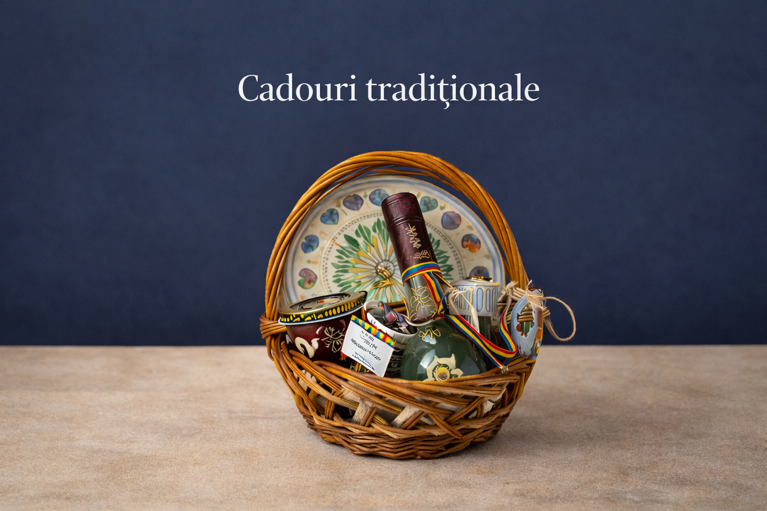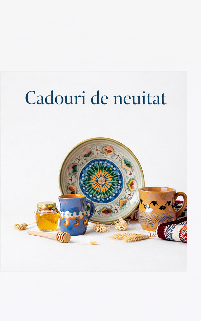 Bol ceramic de Horezu autentic, 19 cm, lucrat manual, model tradițional radial, cu cutie cadou