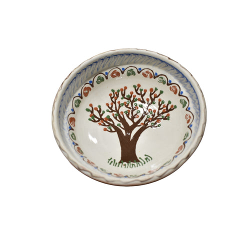 Bol ceramic de Horezu, 16 cm, lucrat manual, decor tradițional românesc, model pomul vieții
